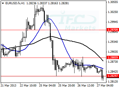 The common currency is steady trading in 1.2885/1.2829 tight range against the US dollar. Bearish sentiment has increased yesterday after the head of Eurogroup, Jeroen Dijsselbloem, said that Cyprus rescue plan could be used as a “template” for other stressed countries, one could only think of southern countries. However later on even Dijsselbloem denied that he said Cyprus rescue is a template, also an ECB official said that this comment by Dijsselbloem was wrong and the ECB governing council member Nowotny said that Cyprus is a special case. Additionally, Italy remains in political uncertainty while today will auction 5 year and 10 year bonds, attempting to raise as much as €7 bln, therefore investors are looking for possible implications on Italy. Selling pressure on the Euro could begin again easily as we saw yesterday, sentiment is weak therefore we expect prices to fall lower towards medium-term support at 1.2655, as of writing the pair attempts to breach 1.2829.